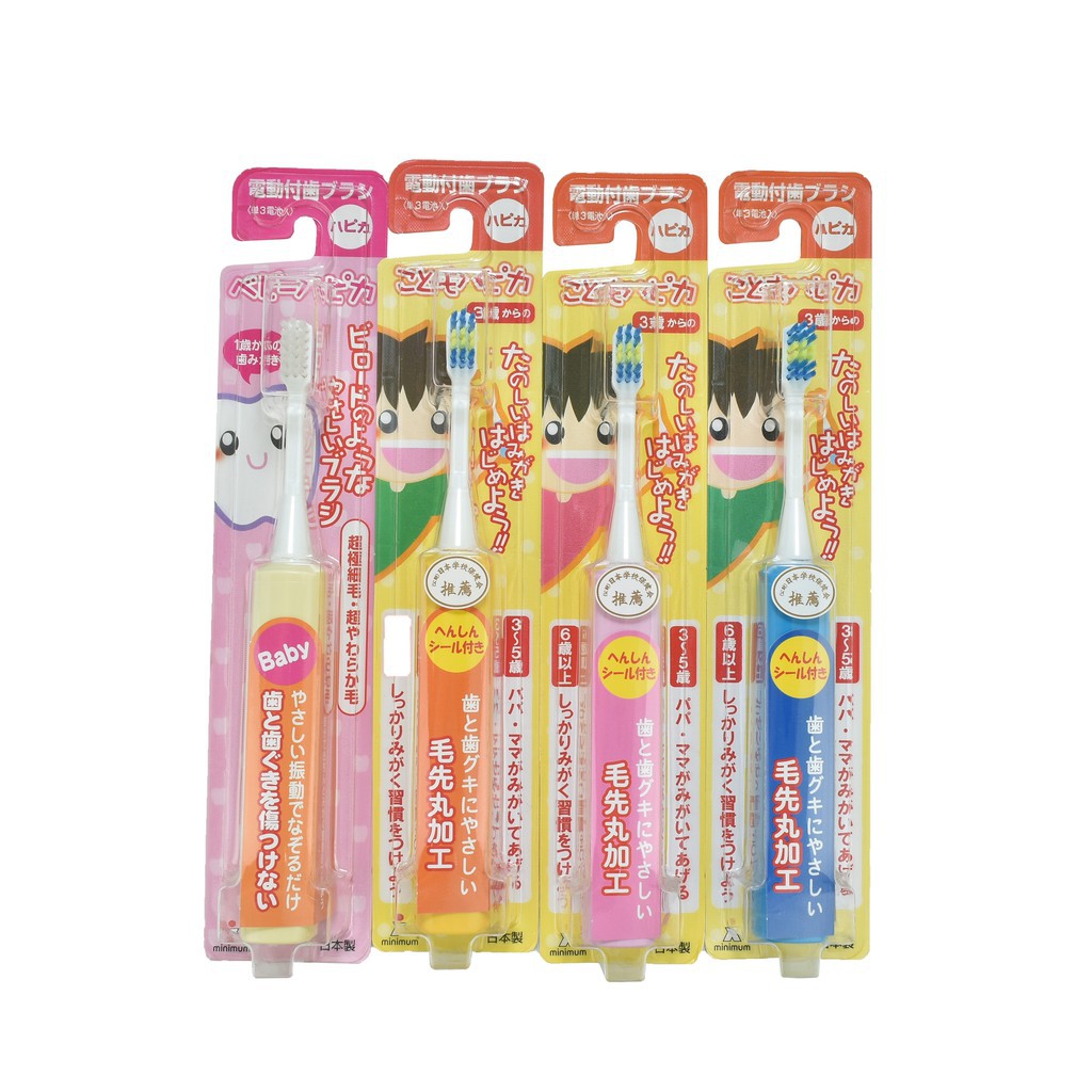 Giới thiệu cho các mẹ sản phẩm bàn chải điện cho bé hàng nội địa Nhật Minimum. Sản phẩm phù hợp cho bé từ 3 đến 5 tuổi. Được đánh giá là sản phẩm chất lượng nhưng giá bán lại khá rẻ, nên sản phẩm được bán rất chạy suốt 20 năm ở Nhật.